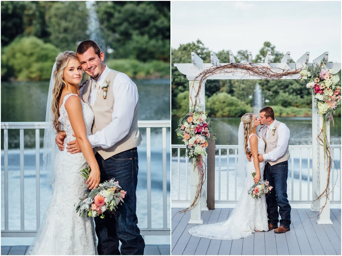Laken and Wayne said their "I Do's" on possibly the hottest day this year (and possibly the hottest in my life), but that didn't stop them from having a beautiful day! The weather forecast said it was 99°, but felt like 115°, and boy were they right! Despite the heat, family and friends gathered at the Lodges at Gettysburg celebrated lakeside with Waynie and Laken. After the rings were exchanged and the vows were read, everyone headed to the reception all for dinner, drinks and dancing.