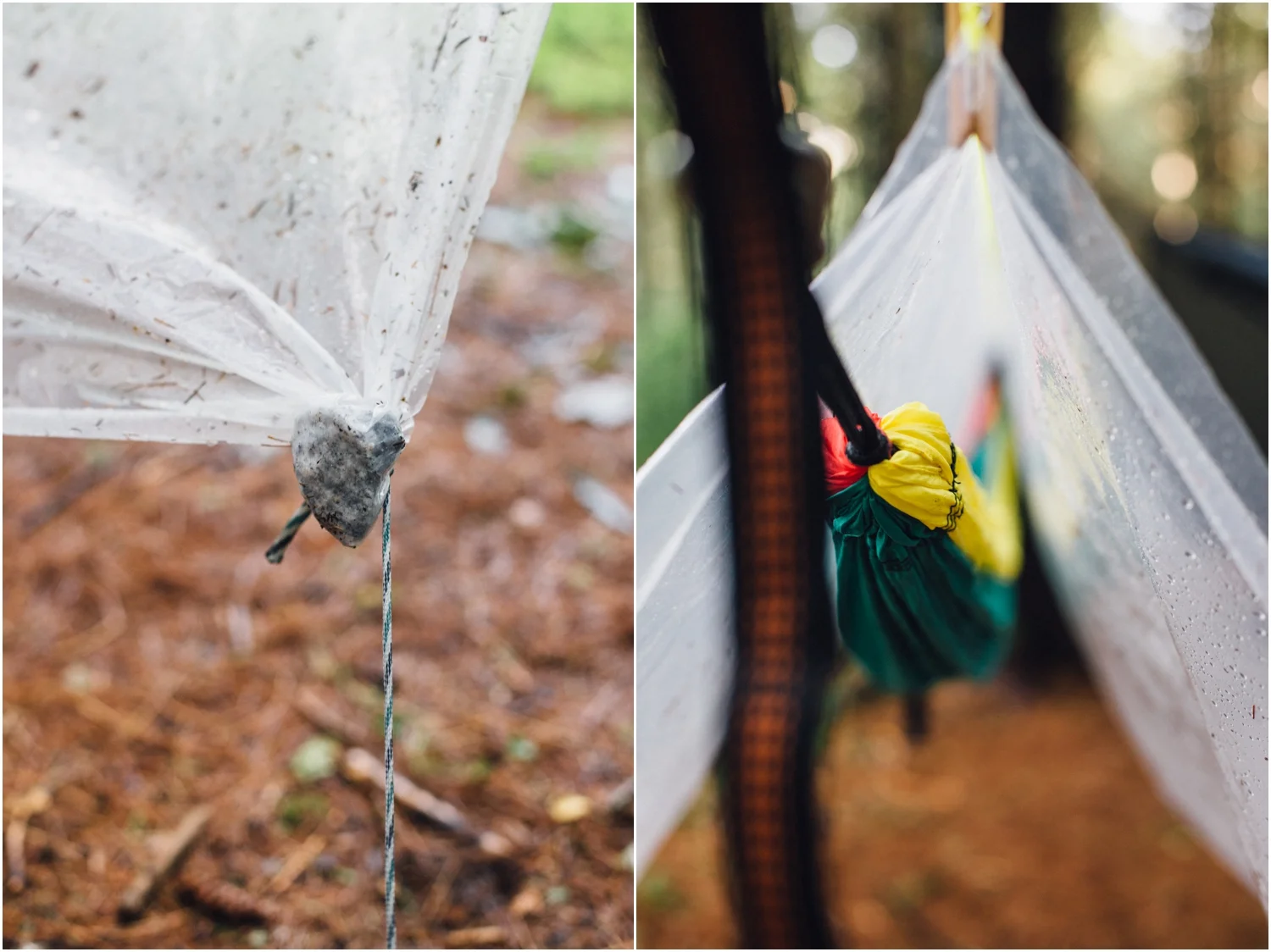 Lesson #4: Be prepared to get creative and craft up another sleeping option in case your hammock or tent does get wet. One of the girls had brought a tent which sprung a leak and allowed rain water to soak a part of her sleeping bag! Have no fear- we set her up in a last minute hammock set up. Luckily, she had brought a hammock to relax in and the girls took one of her tarps from the tent and made grommets out of rocks to tie it down! Talk about MacGyver!